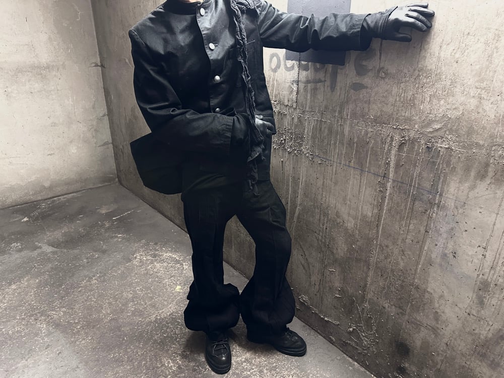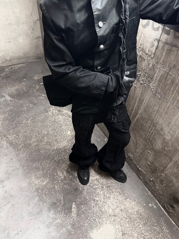 The Balloon Black Denim from Paradoxe Paris showcases the label's mastery in sculpting unique silhouettes. Crafted entirely in their Parisan atelier, this piece reimagines denim with distinctive volumes and carefully placed pleats,