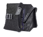 It’s made from washed and tumbled 2.6mm full-grain natural reverse horse culatta, vegetable-tanned and hand-dyed in a matte black finish evocative of decay — rich in subtle tonal shifts and irregular textures.