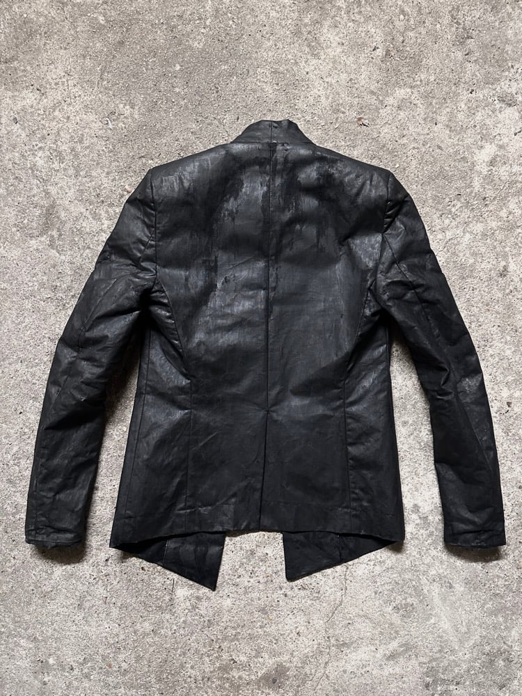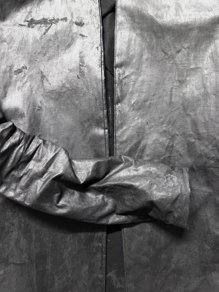 The Coated Blazer by Paradoxe Paris is a statement piece of avant-garde tailoring, defined by its experimental coating process that lends the fabric a distinctive texture and depth. Structured yet fluid, the blazer embodies Paradoxe’s radical approach to construction, merging precision with raw, unconventional finishes.
